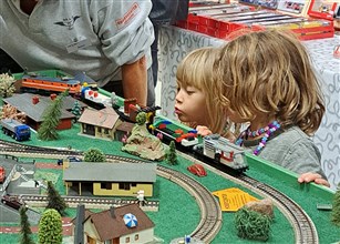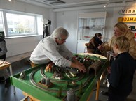 I år var det inte så många barn, men en del av dem stannade desto längre. Olof var nog den som orkade längst och som provade alla banorna omsorgsfullt. Mobile station är lite knepig att sätta sig in i. Olof gjorde ett försök, medan Peder instruerade. Trots allt är legobanan betydligt enklare och roligare och mer omväxlande!
